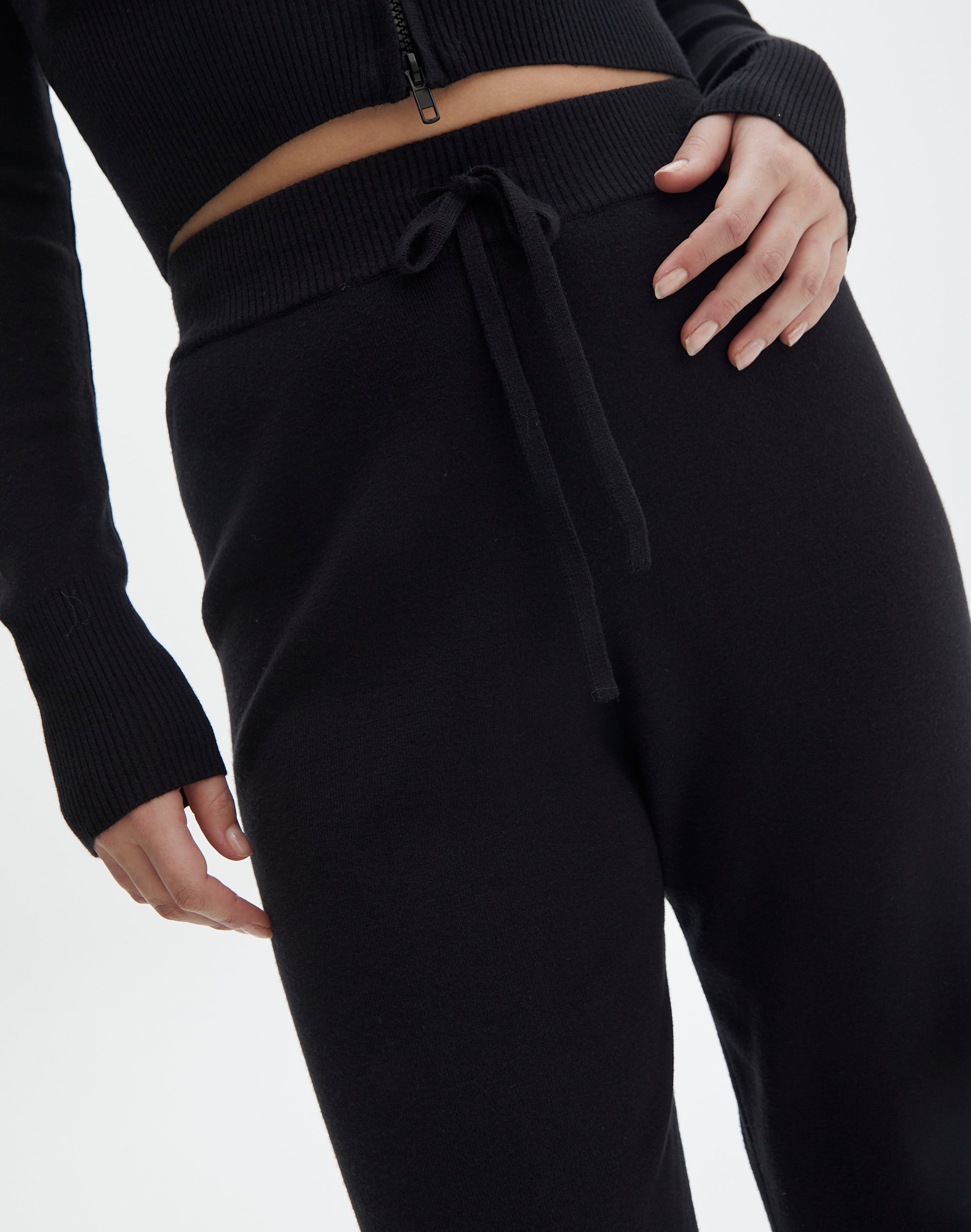 Knit Wide Leg Pants Slim Regular Fit Black Love Sophia